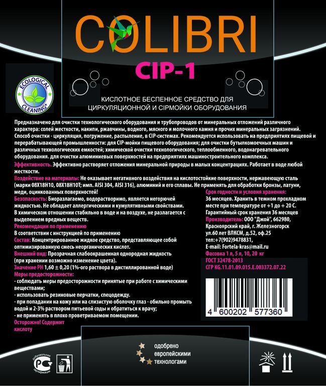 Кислотное беспенное средство. Предназначено для очистки технологического оборудования и трубопроводов от минеральных отложений различного характера: солей жесткости, накипи, ржавчины, водного, мясного и молочного камня и прочих минеральных загрязнений. Способ очистки - циркуляция, погружение, распыление, в CIP-системах. Рекомендуется использовать на предприятиях пищевой и перерабатывающей промышленности: для CIP-мойки пищевого оборудования; для очистки бутылкомоечных машин и различных технологических емкостей; химической очистки технологического, теплообменного, водонагревательного оборудования. .