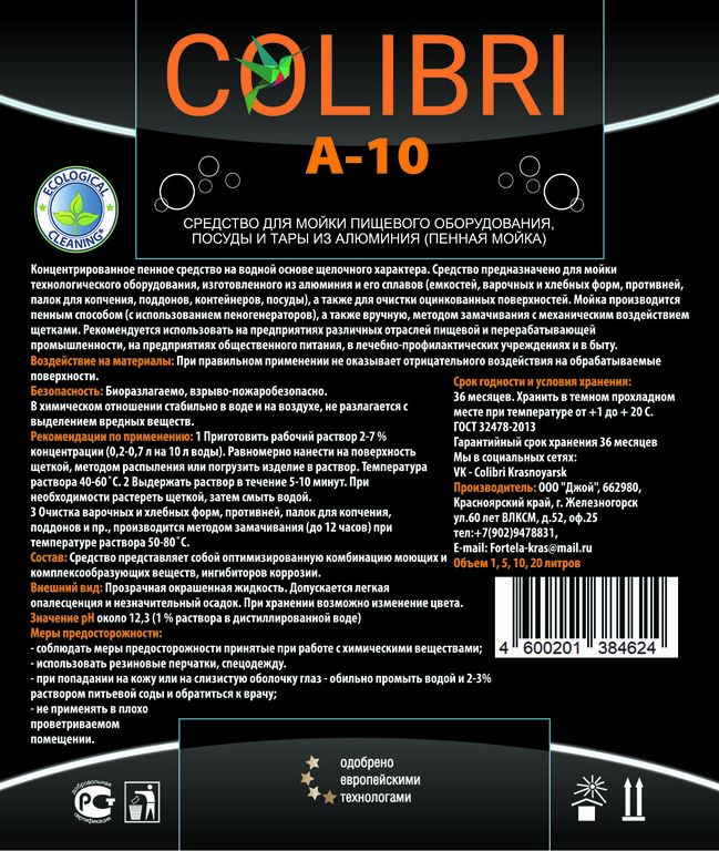 Концентрированное пенное средство на водной основе щелочного характера. Средство предназначено для мойки технологического оборудования, изготовленного из алюминия и его сплавов (емкостей, варочных и хлебных форм, противней, палок для копчения, поддонов, контейнеров, посуды), а также для очистки оцинкованных поверхностей. Мойка производится пенным способом (с использованием пеногенераторов), а также вручную, методом замачивания с механическим воздействием щетками.
