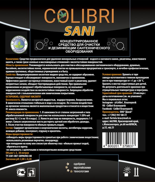 Концентрированное средство для очистки и дезинфекции сантехнического оборудования. Средство предназначено для удаления минеральных отложений -водного и мочевого камня, ржавчины, известкового налета, а также грязе-солевых и масложировых отложений с кислотостойких поверхностей. Концентрированное кислотное жидкое средство, не содержит абразивов. Хорошо очищает и обезжиривает поверхности, экономично в применении. Эффективно удаляет застарелые отложения, известковый налет и ржавчину, удаляет неприятные запахи, обладает бактерицидным действием.При правильном применении не разрушает обрабатываемые поверхности, не оказывает коррозионное воздействие на кислотостойкие поверхности. Запрещена обработка поверхностей с гальваническими или химическими покрытиями.