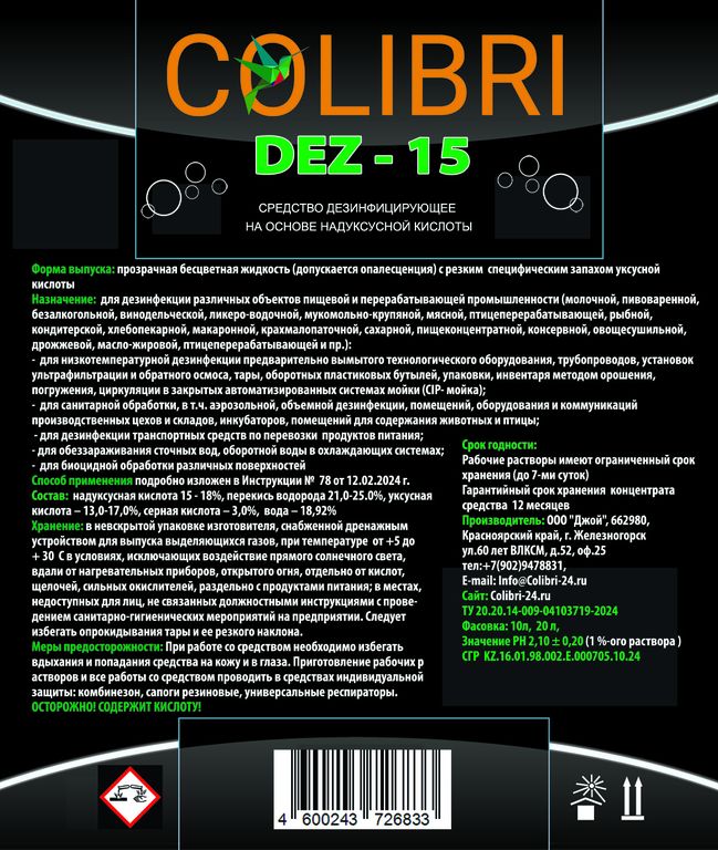 Средство предназначено для низкотемпературной дезинфекции предварительно вымытого технологического оборудования, коммуникаций, установок ультрафильтрации и обратного осмоса, оборотных пластиковых бутылей, тары и упаковки, инвентаря методом циркуляции в закрытых автоматизированных системах мойки (CIP-мойка), орошения, погружения.