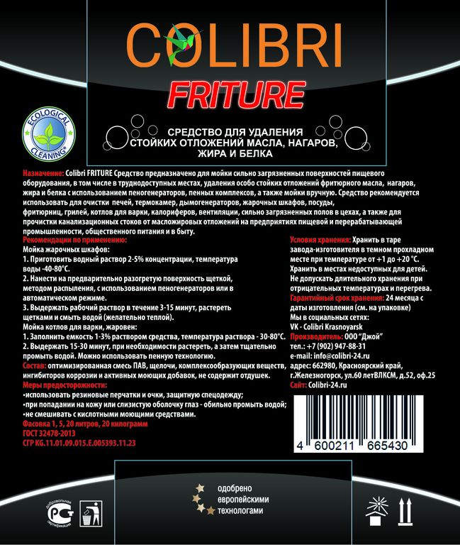 Щелочное пенное средство. Средство предназначено для мойки сильно загрязненных поверхностей пищевого оборудования, в том числе в труднодоступных местах, удаления особо стойких отложений масла, нагаров, жира и белка с использованием пеногенераторов, пенных комплексов, а также мойки вручную. Средство рекомендуется использовать для очистки печей, термокамер, дымогенераторов, жарочных шкафов, посуды, фритюрниц, грилей, котлов для варки, калориферов, вентиляции, сильно загрязненных полов в цехах, а также для прочистки канализационных стоков от масложировых отложений на предприятиях пищевой и перерабатывающей промышленности, общественного питания и в быту.