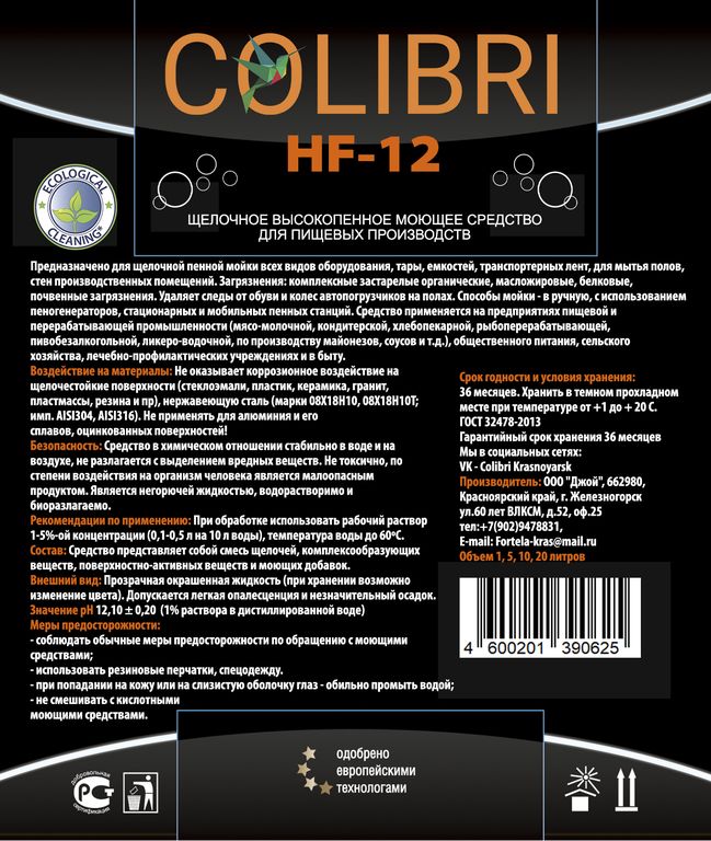 Щелочное пенное средство. Предназначено для щелочной пенной мойки всех видов оборудования, тары, емкостей, транспортерных лент, для мытья полов, стен производственных помещений. Загрязнения: комплексные застарелые органические, масложировые, белковые, почвенные загрязнения. Удаляет следы от обуви и колес автопогрузчиков на полах. Способы мойки - в ручную, с использованием пеногенераторов, стационарных и мобильных пенных станций.